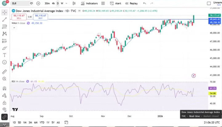 Meanwhile, the Dow closed above 50,000 for the first time ever yesterday: