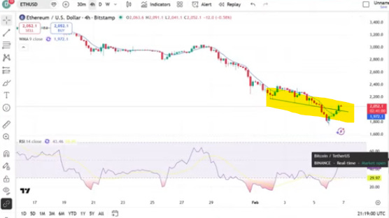 Dale “went for Ethereum” because it had a better RSI structure, and it’s back over the throwover line (highlighted in yellow, forgive the blurriness):
