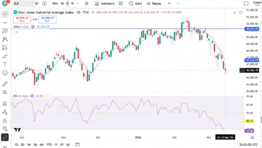 First up under Dale’s microscope was the Dow, which he said is currently “Niagara Falls.”