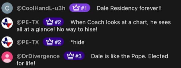 Deservedly, lots of love for Dale in the chat: